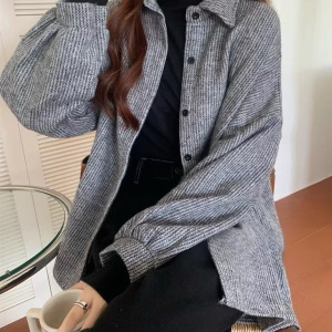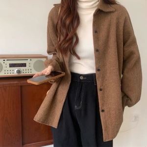 2025爆款设计感小众秋季大码宽松港味慵懒长袖叠穿衬衣外套开