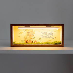 泡泡玛特我们都是星星人系列盲盒收纳展示夜间感应灯苔藓造景相框