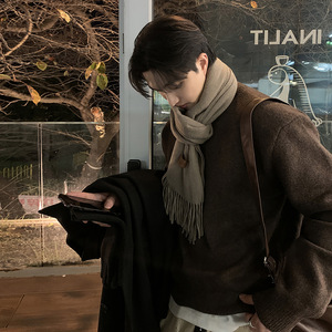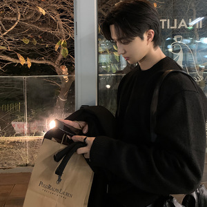 ASCLO青年老钱风纯色圆领毛衣休闲潮流韩版高端套头美拉德针织衫