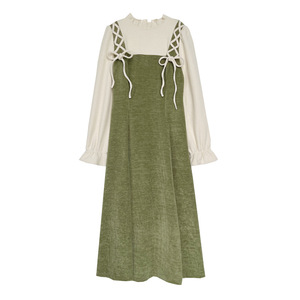 三寸藕【绿光森林】秋季新款法式复古长袖连衣裙女装气质绿色裙子