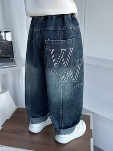9660男童春秋牛仔裤子宽松儿童长裤男孩帅气直筒裤2025新款秋装潮