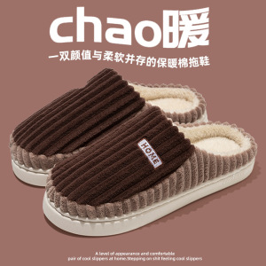 棉拖鞋女款冬季防滑软底月子鞋情侣毛毛拖鞋加绒保暖轻便家居拖鞋