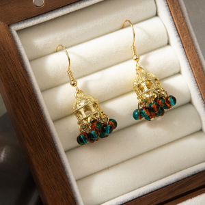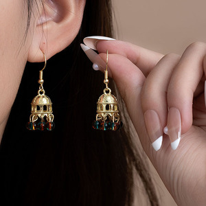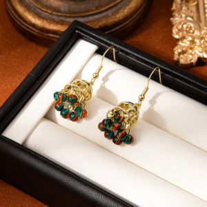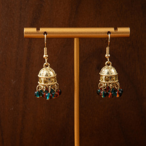 彩色串珠立体风铃耳环高级感新中式民族风复古手作耳钩度假风耳饰