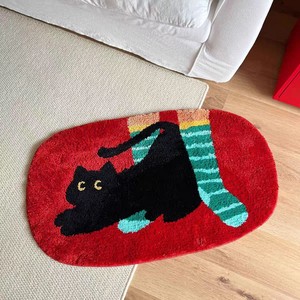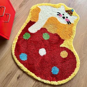 跨境圣诞节地毯超可爱袜子小猫地毯仿羊绒地垫新床边毯圣诞袜脚垫
