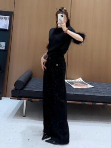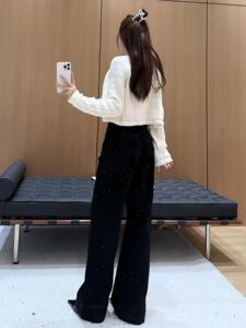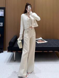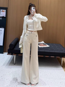小香风名媛气质牛仔裤口袋设计感高档阔腿裤南油女遮肉显瘦直筒裤