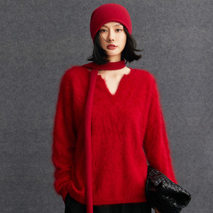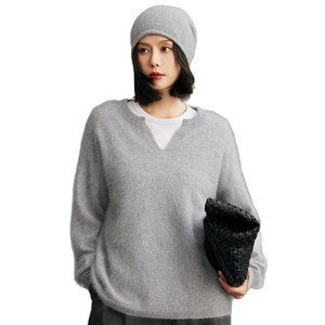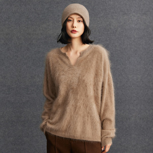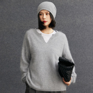 100%纯羊绒拉绒 轻奢拉绒2025时尚百搭假两件v领针织衫