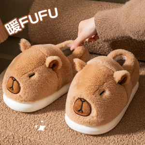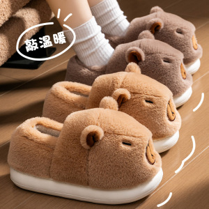卡皮巴拉包跟棉拖鞋女2025新款秋冬季情侣防滑保暖室内家居棉鞋女