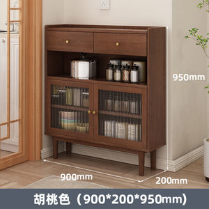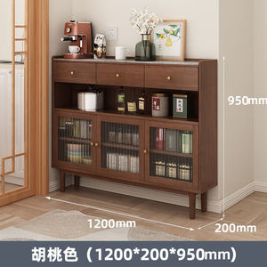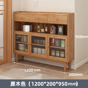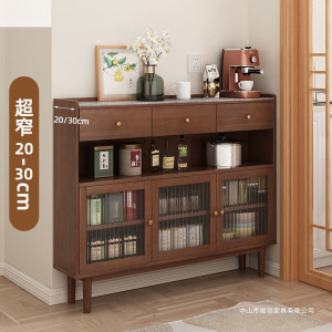 极窄餐边柜岩板20cm超薄对开门实木靠墙一体厨房茶水柜储物餐边柜