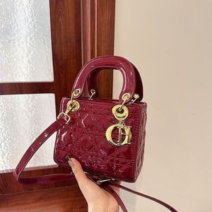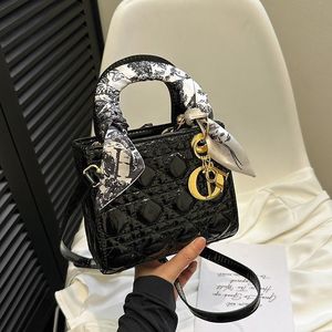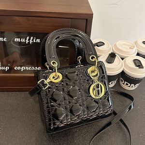 感小众2025春夏款时尚单肩包斜挎包漆皮亮面手提戴妃包黑色