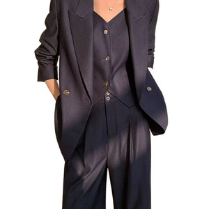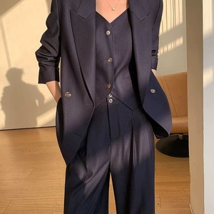 藏青色西装+马甲+阔腿裤