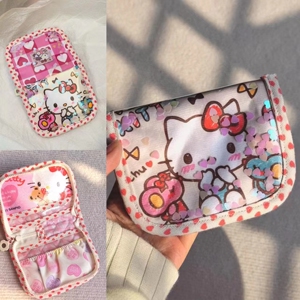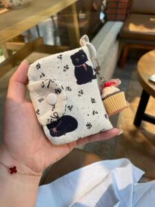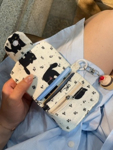 新款可爱猫咪多层收纳卡包可挂件零钱包帆布耳机包随身包证件包