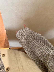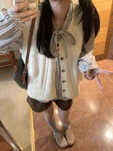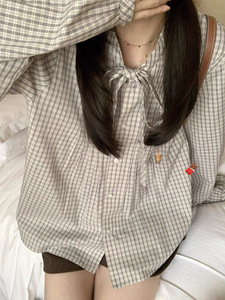 日系学院风衬衫女新款黑白格飘带蝴蝶结上衣减龄叠穿内搭小个子