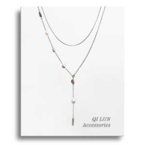 拉丝球珍珠项链叠戴超长毛衣链配饰女秋冬高级感小香风轻奢可调节