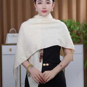韩版新款洋气时尚百搭羊毛亮片针织披肩空调外搭交叉三角披肩