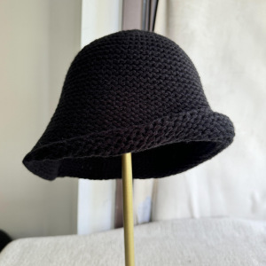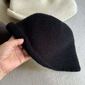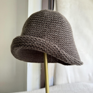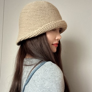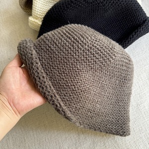 出韩国款羊毛针织卷边水桶帽子女秋冬复古咖色大头围套头帽渔夫帽