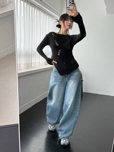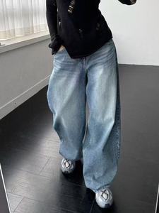 梵思羽秋冬新品纹理宽松牛仔裤男女同款水洗阔腿裤刺条纹轻奢面料