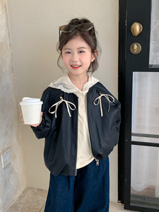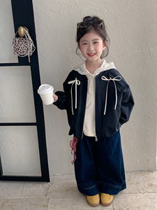 女童外套春秋款2025新款洋气宝宝秋季蝴蝶结夹克衫儿童秋装棒球服