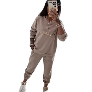 跨境2025女装两件套英文印花时尚两件套女式运动套装