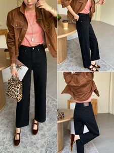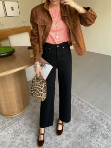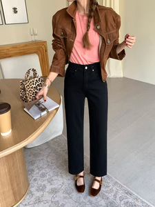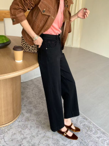 秋TOP欧制广州十三行笑脸刺绣九分直筒裤不褪色四面弹牛仔裤61635
