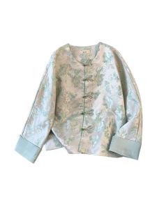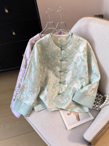 新中式国风改良汉服盘扣提花织锦织金重工刺绣缎外套花朵南油秋冬