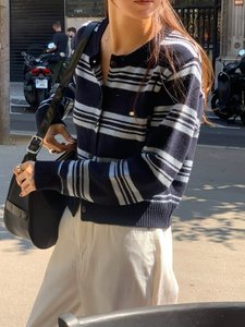 现货 ins韩国秋冬复古休闲时尚长袖修身显瘦针织开衫毛衣外套女