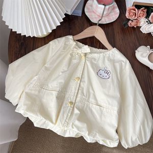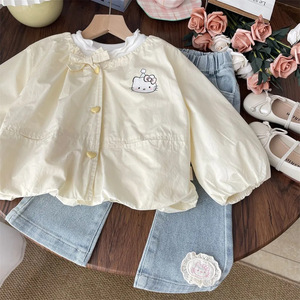 韩系秋季女童奶黄色kt印花花苞娃娃外套宝宝上衣洋气衣服0171A022
