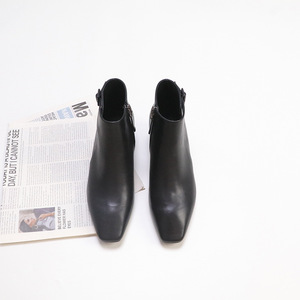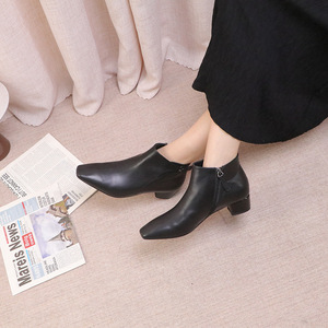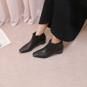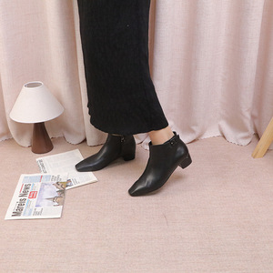 复古尖头侧扣女式短靴 中跟舒适百搭女靴 秋冬时尚女士皮靴