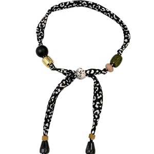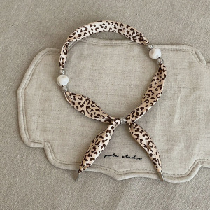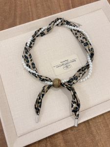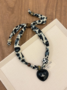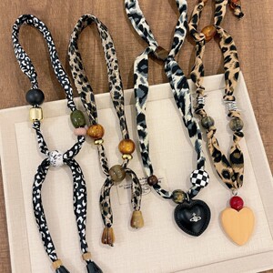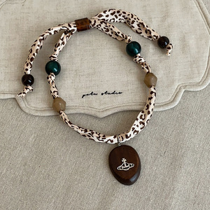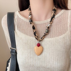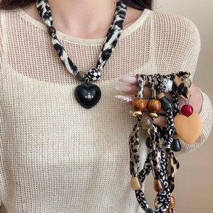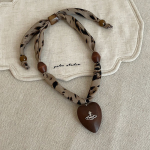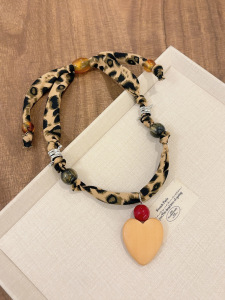 新中式民族风豹纹丝巾项链小众设计爱心吊坠颈链个性时尚串珠颈饰