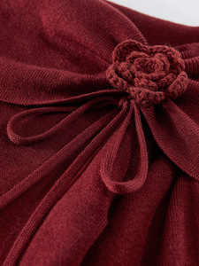 氛围感一字肩收腰针织衫2025秋季新款通勤红色温柔风气质长袖上衣