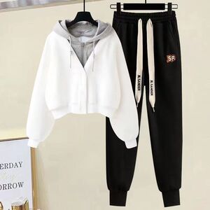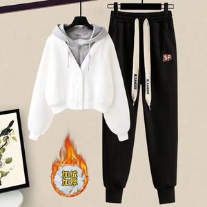 白色卫衣+黑束脚裤【加绒加厚套装】