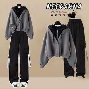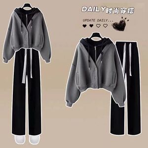 灰色卫衣+黑阔腿裤【加绒加厚套装】