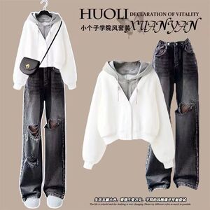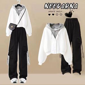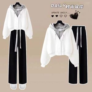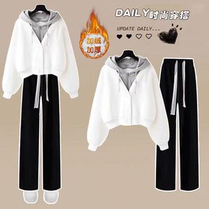 白色卫衣+黑阔腿裤【加绒加厚套装】