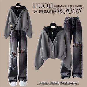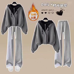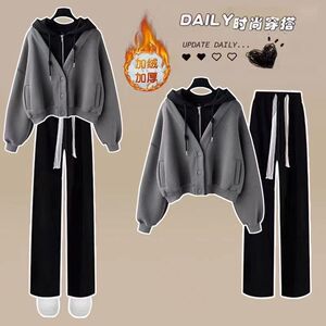 灰色卫衣+灰阔腿裤【加绒加厚套装】