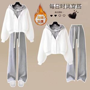 白色卫衣+灰阔腿裤【加绒加厚套装】