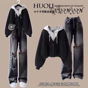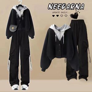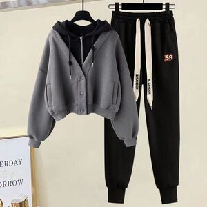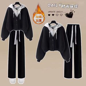 黑色卫衣+灰阔腿裤【加绒加厚套装】