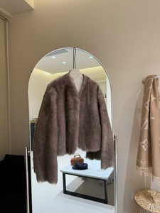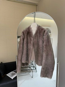 冬季新款气质淑女V领托斯卡纳皮毛一体纯色短外套女设计感皮草