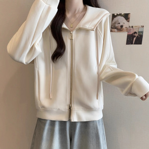 大码美式连帽卫衣外套女秋款胖mm宽松遮肚子双拉链开衫短款上衣