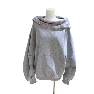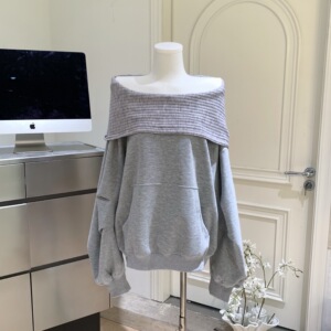 2025实拍秋季新款斜肩一字领宽松套头连帽卫衣露肩上衣女