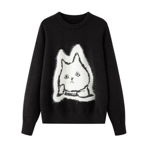 2025秋季新款时尚减龄百搭猫咪刺绣圆领针织衫女4FA235671