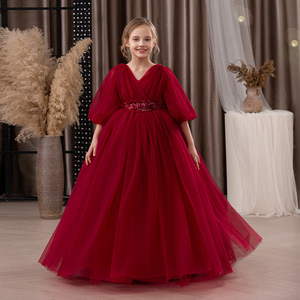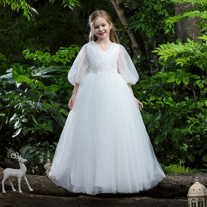 跨境专供小女孩生日宴会晚礼服钢琴演出蓬蓬长裙女童婚礼花童裙子