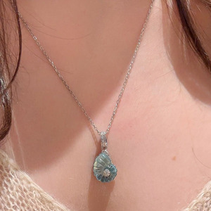 小红书爆款海蓝海螺吊坠闪钻耳钉项链毛衣链配饰锁骨链款一件代发