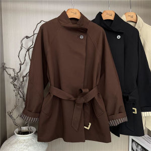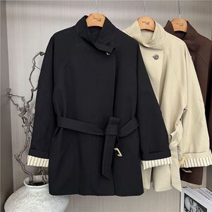 韩系系带立领短款风衣女秋季2025新款感气质大衣今年流行外套