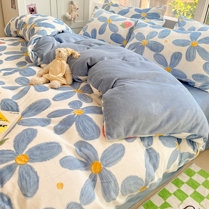蓝墨花朵【高克重加厚牛奶绒加倍保暖】