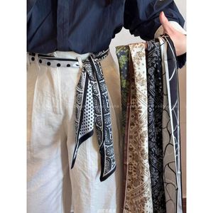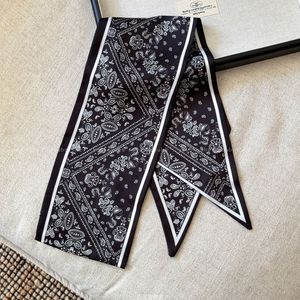 黑色腰果花长条薄丝巾女2025新款韩系斜角领巾高级感气质系腰配饰