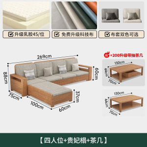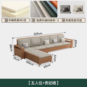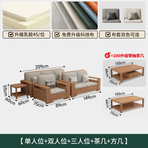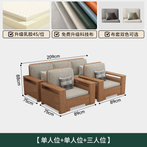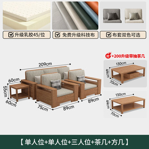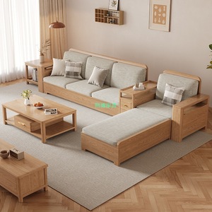 北欧白蜡木实木沙发组合布艺沙发现代简约大小户型客厅原木色家具