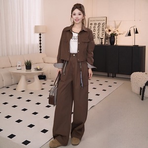 22384时尚套装2025春秋款洋气显瘦外套背心工装阔腿裤休闲三件套