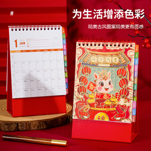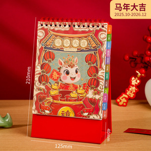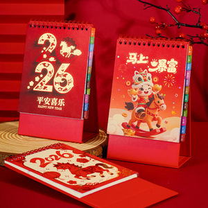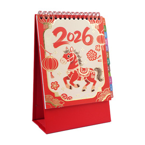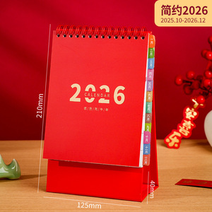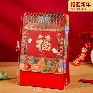 2026年新款国风线圈纸质台历办公桌面日历摆件喜庆红色小台历