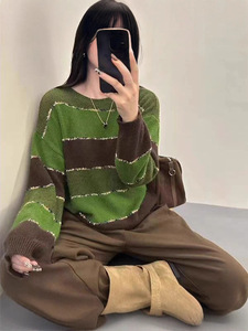 韩系慵懒风条纹针织衫2025年秋冬新款流苏气质休闲百搭减龄上衣女