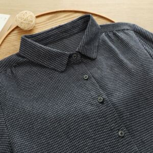 2025春秋宽松休闲长袖格子衬衫时尚慵懒风衬衣外套磨毛格子上衣