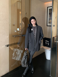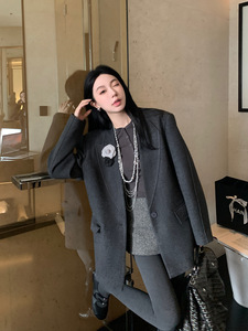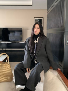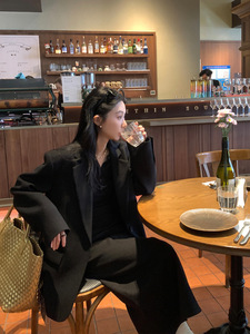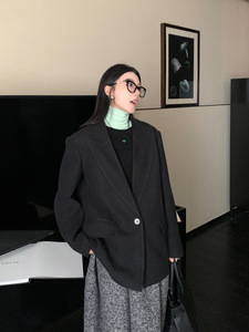 区区欧阳黑色西装外套女秋季高级感宽松休闲小个子设计感小众西服